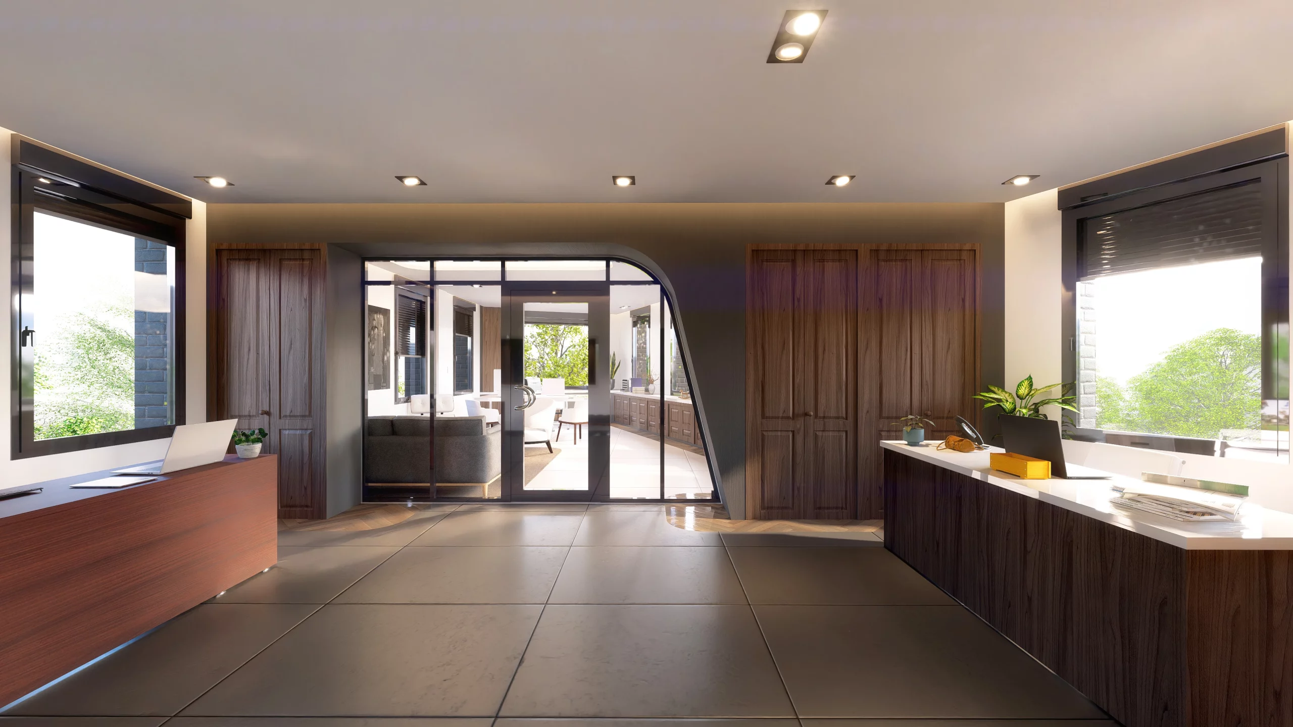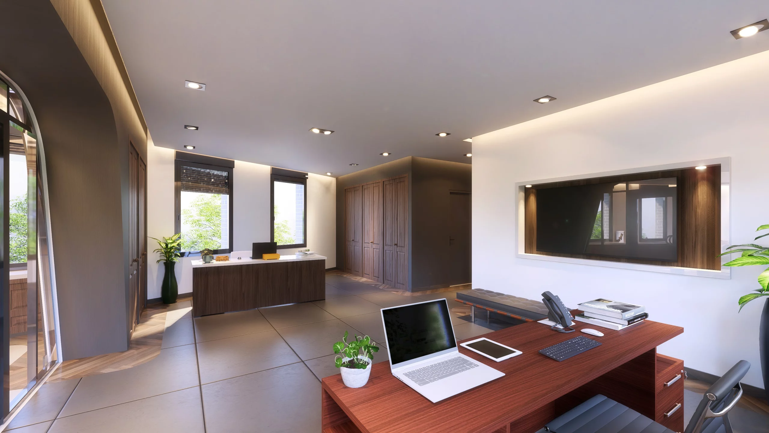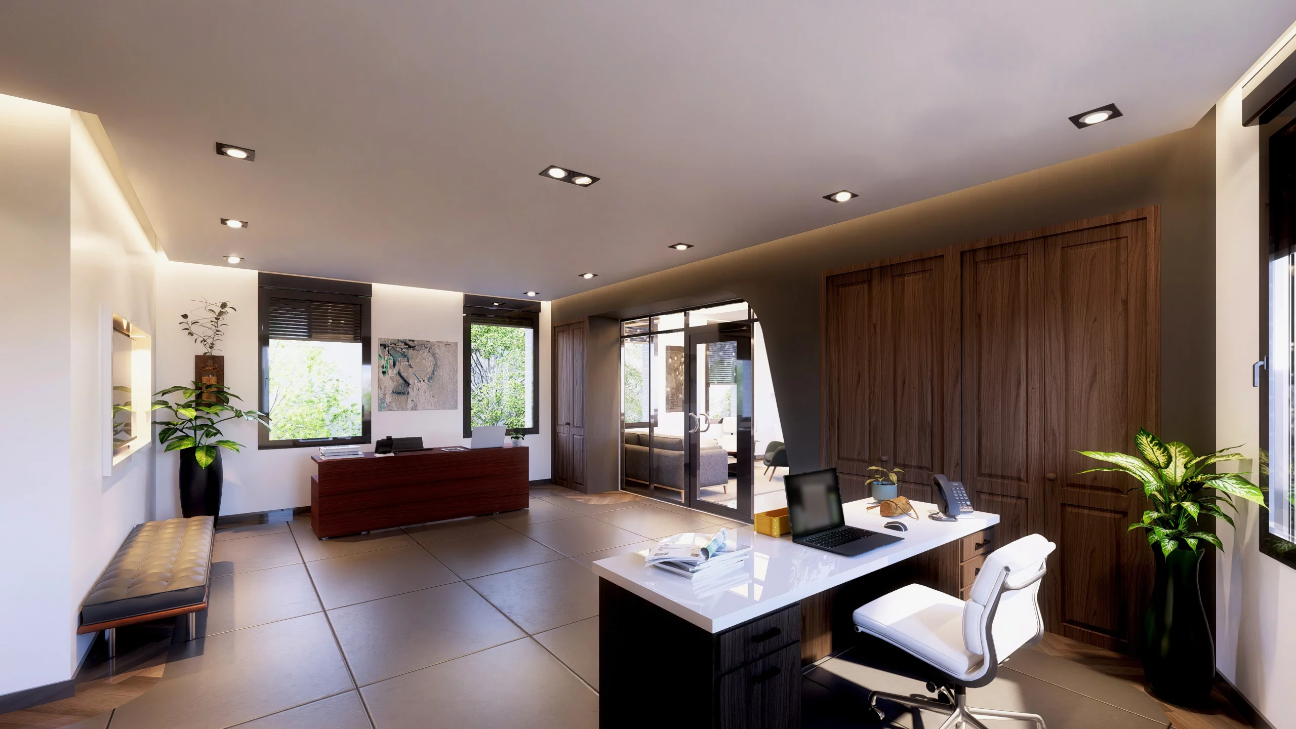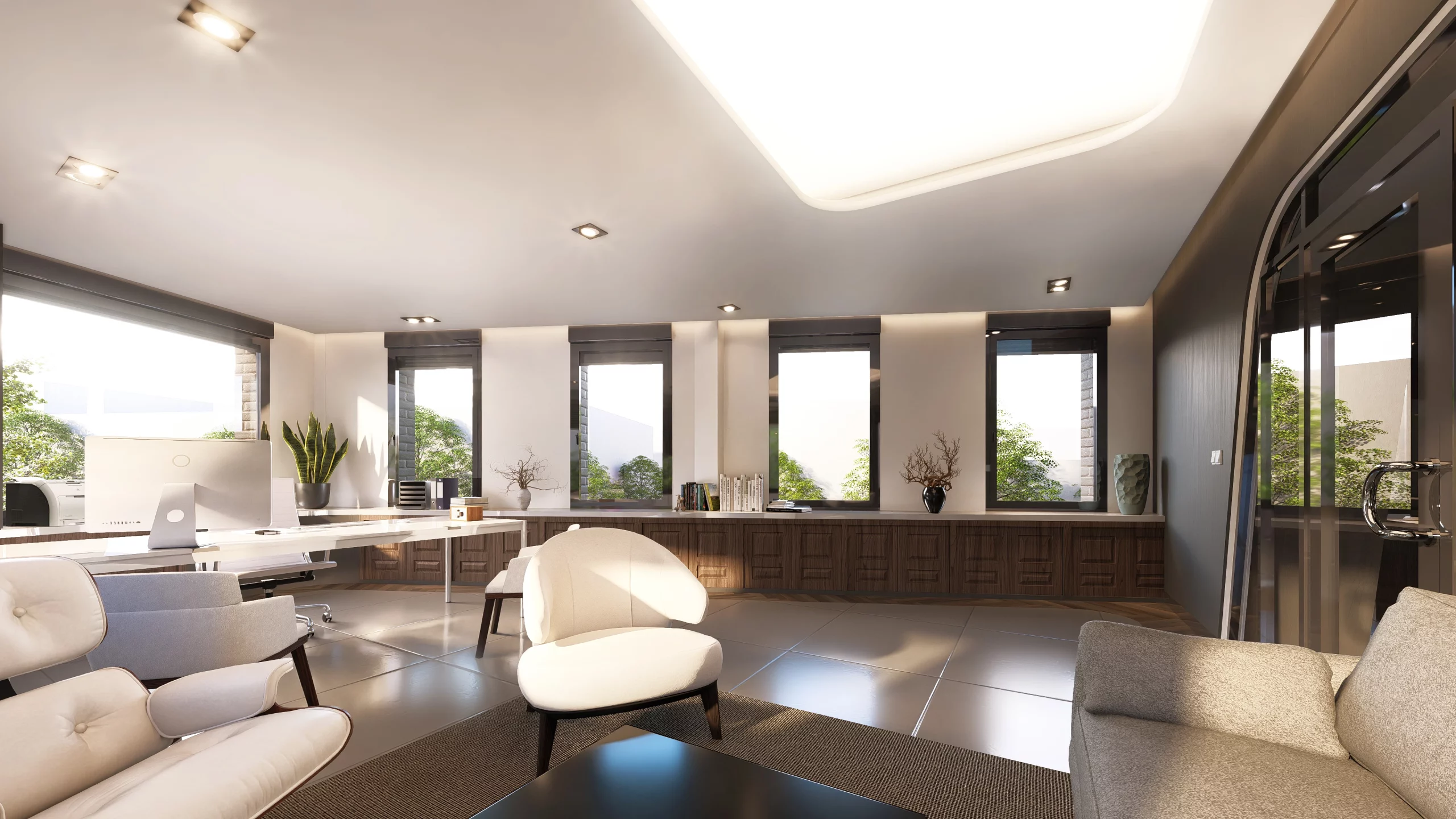 Pour la conception du nouveau siège social de DJ Investment, nous avons opté pour une écriture sobre et contemporaine, fondée sur une élégance minimaliste. Le projet articule des lignes douces et épurées, une matérialité noble — bois naturel, pierre claire, verre — et une palette chromatique feutrée dans des tons neutres. Ce langage vise à affirmer une identité à la fois institutionnelle et accueillante, où la lumière naturelle finement maîtrisée dialogue avec des volumes clairs pour offrir des ambiances apaisées. L’ensemble compose un cadre de travail raffiné, empreint de sérénité.